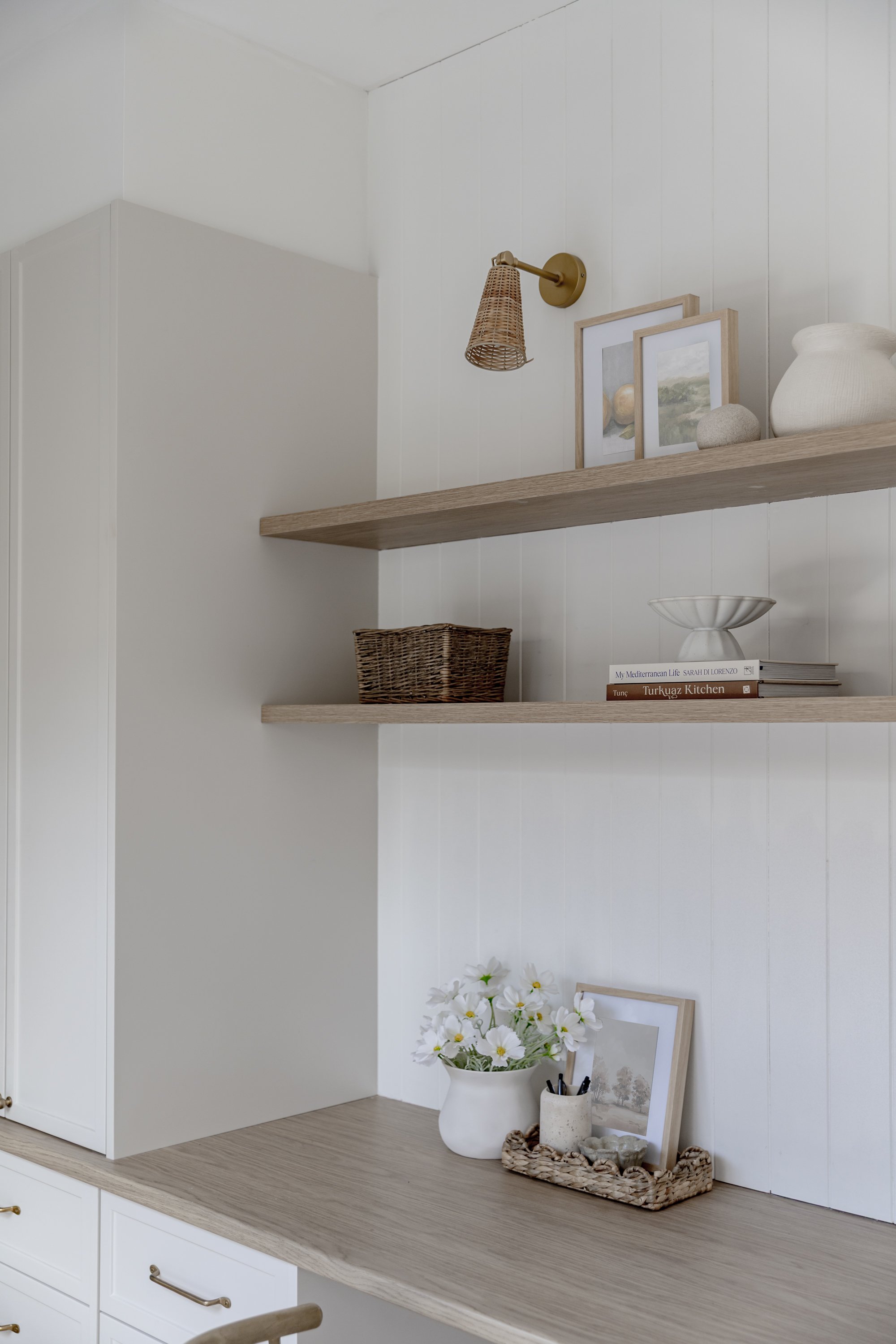 The main wing of the home is thoughtfully designed to include all the essential everyday spaces for our clients. This area features the Master Bedroom with a walk-in robe and ensuite, as well as a dedicated office, laundry, powder room, and mudroom. One of our favourite design moments in this wing is the stunning herringbone natural stone flooring, adding a beautiful textured feature to both the powder room and laundry.